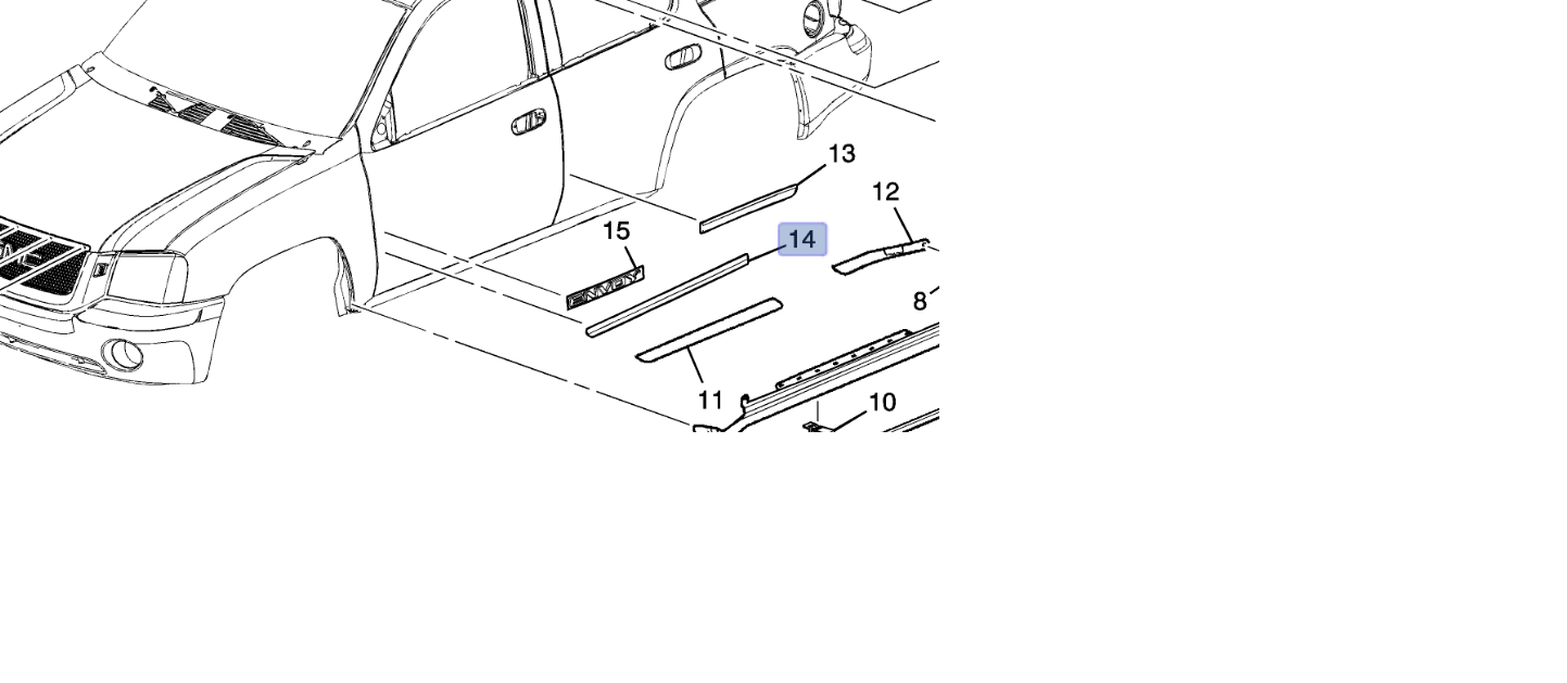 10362708 Molding Frt S/D Upper Chrome RH SSR, Trailblazer, Envoy, Rainier
